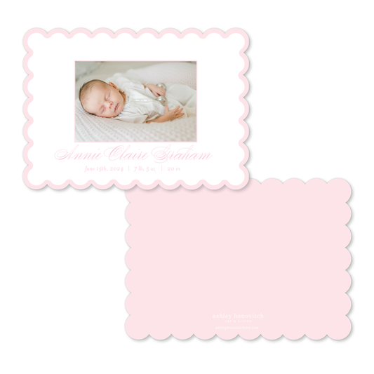 Pink Simple Scallop Birth Announcements