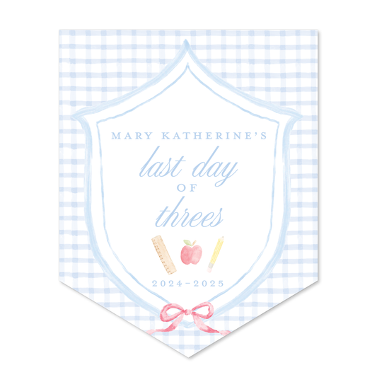 Large Back to School Sign in Blue Gingham Crest *SHIPS AUGUST 15*