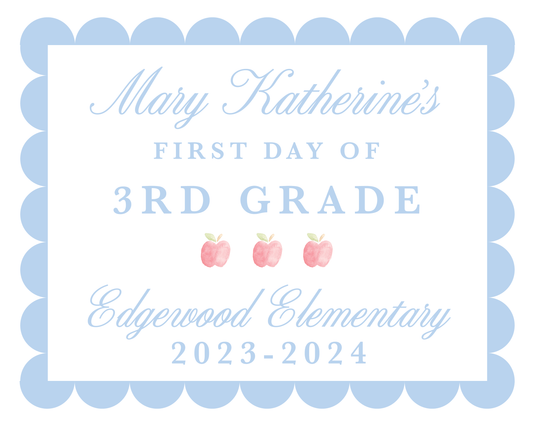 Large Back to School Sign in Blue Scallop *SHIPS AUGUST 15*