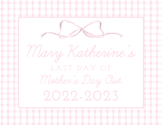 Large Back to School Sign in Pink Gingham *SHIPS AUGUST 15*