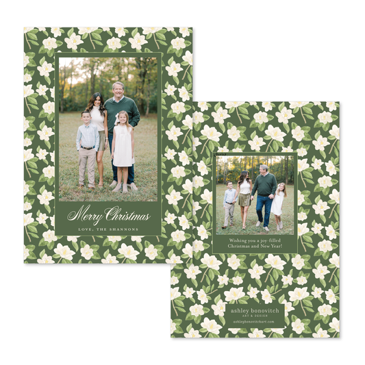 Magnolia Christmas Card in Green