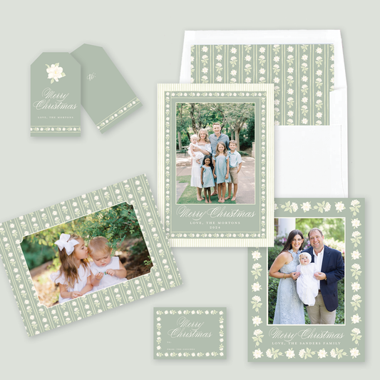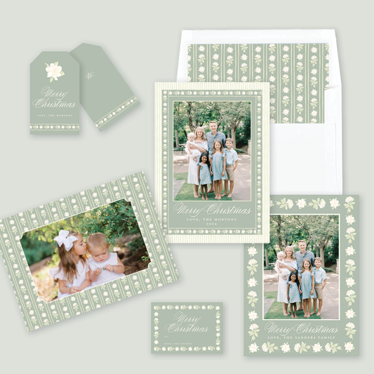 Gardenia Border Christmas Card in Sage