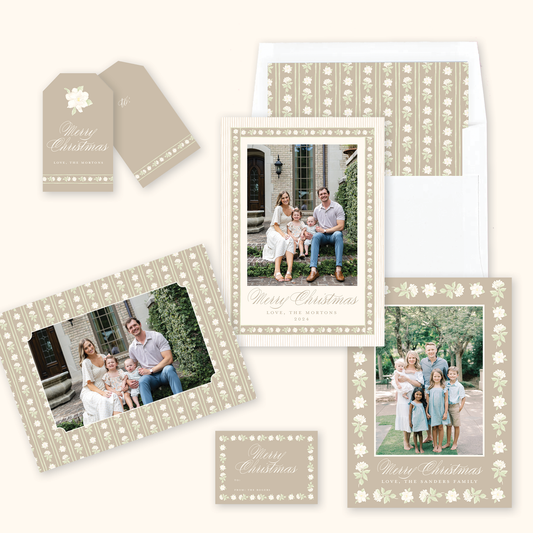 Gardenia Border Christmas Card in Tan