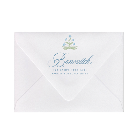 Simple Wavy Calligraphy Christmas Card in Dark Blue With Light Blue Writing