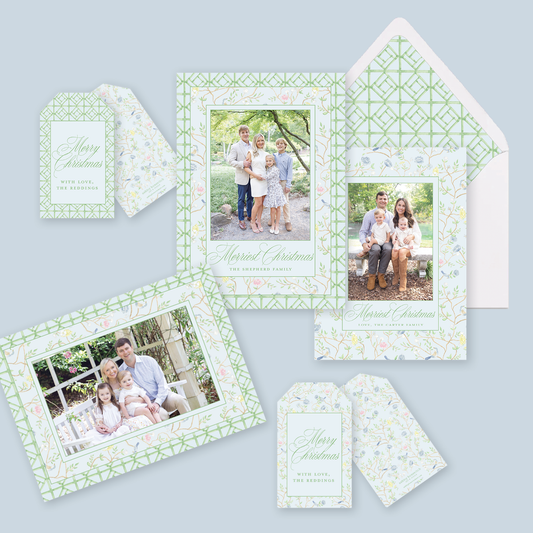 Simple Wavy Calligraphy Christmas Card in Light Green With Green Writing