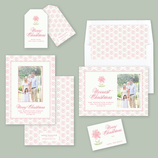 Poinsettia Medallion Block Print Christmas Gift Stickers
