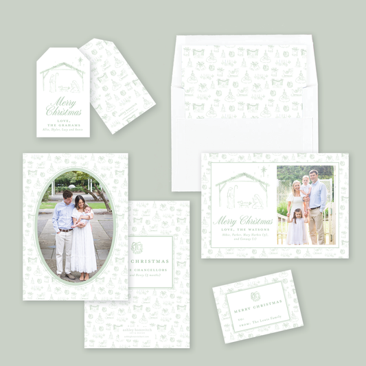 Christmas Toile Nativity Gift Tags in Green