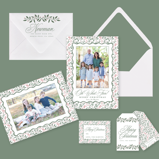 Holly Bows Christmas Card