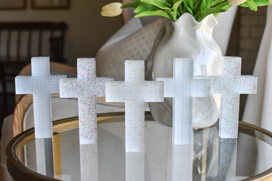 Acrylic Tabletop Cross in Grandmillenial Stripe