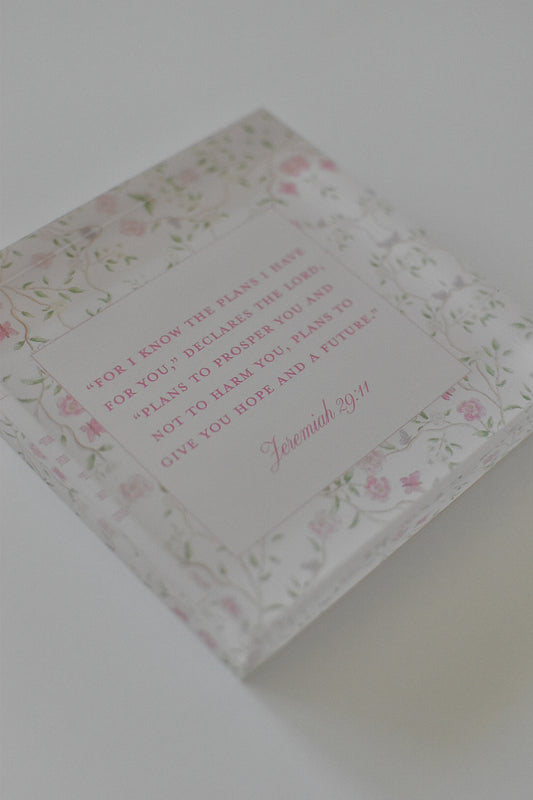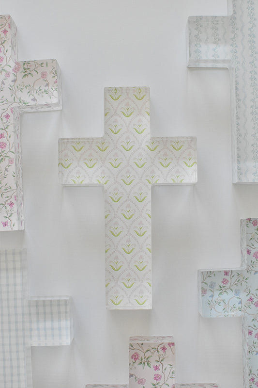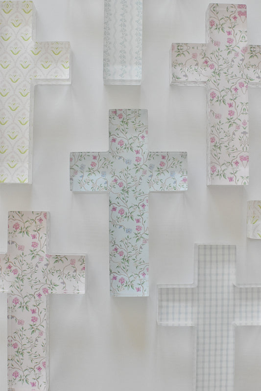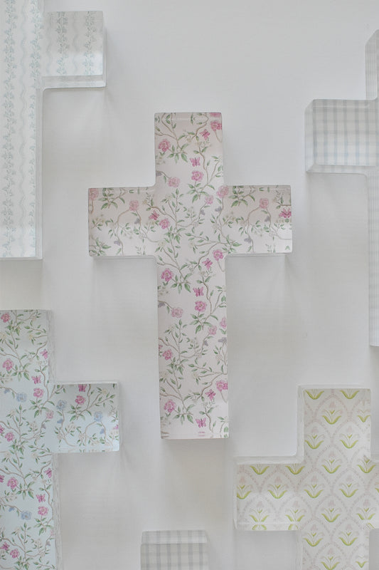 Acrylic Tabletop Cross in Pink Chinoiserie
