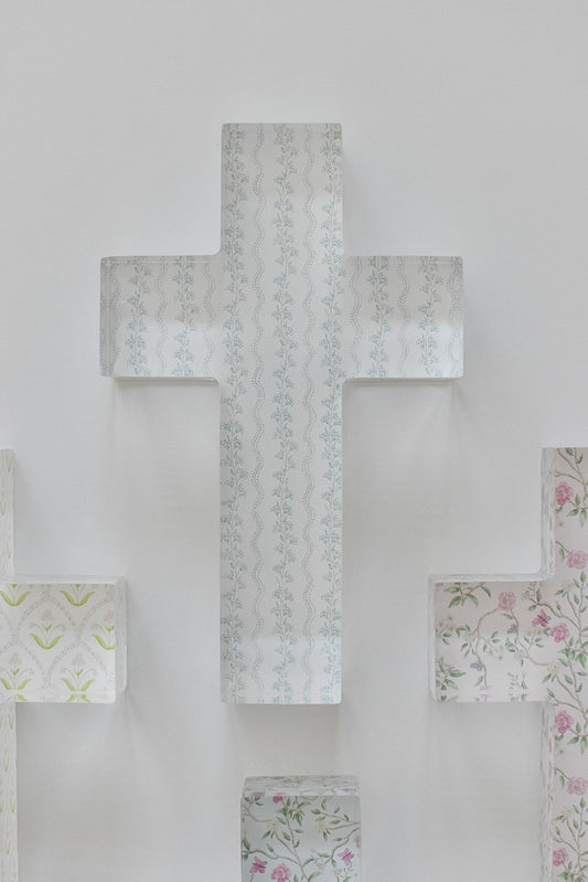 Acrylic Tabletop Cross in Blue Chinoiserie