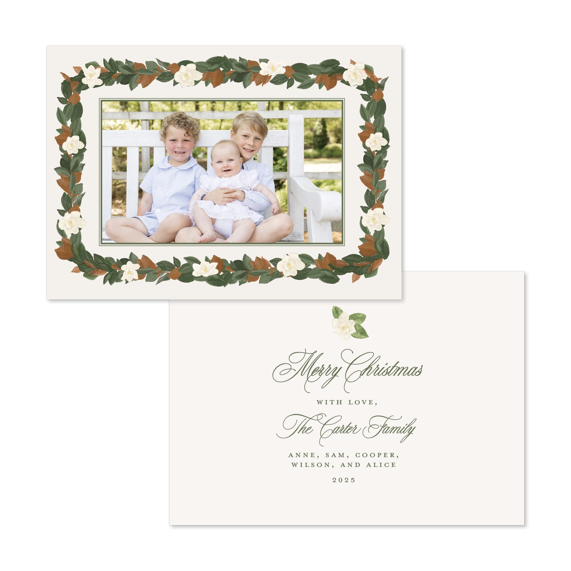 Magnolia Garland Christmas Cards in Ivory - Landscape