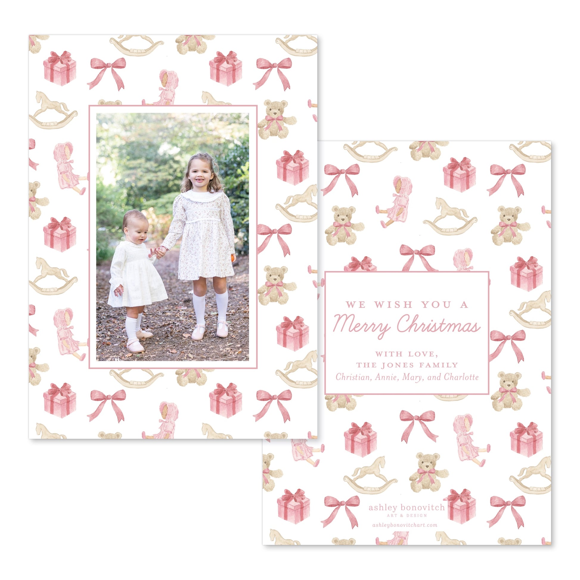 5x7 inches, printed on luxe 120# thick white card stock, includes envelopes