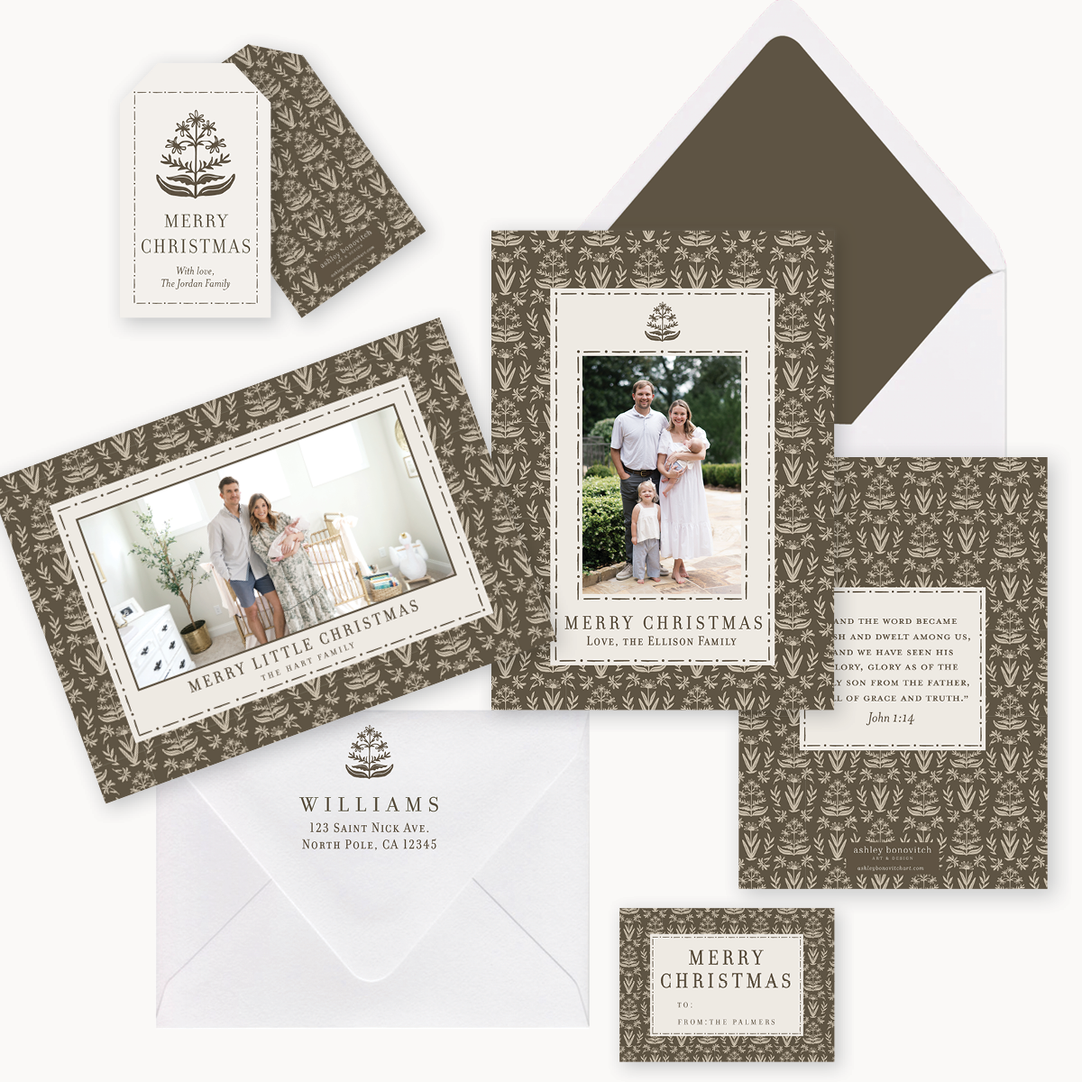 5x7 inches, printed on luxe 120# thick white card stock, includes envelopes