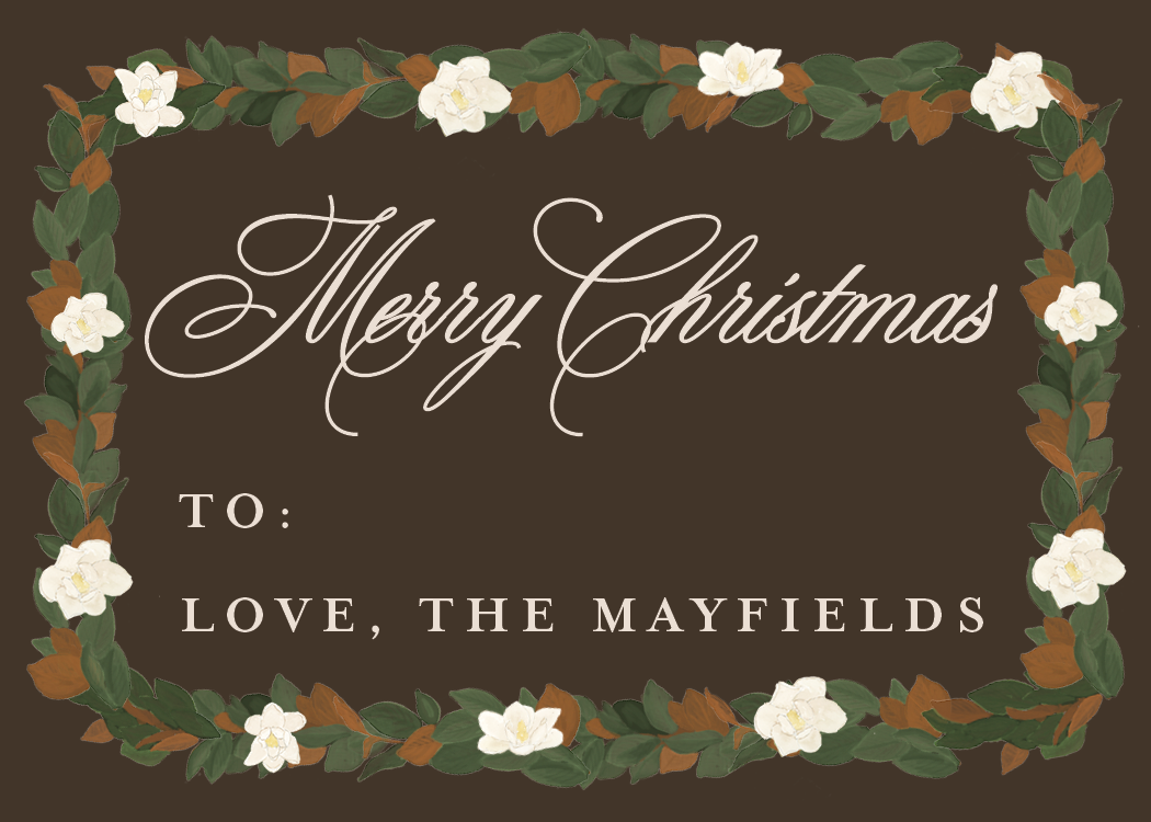 Magnolia Garland Christmas Gift Stickers in Chocolate